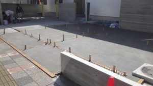 スタジオアンビエンテ窪田さんの仕事です。この現場の外壁600㎡あります、見た目より多くてトテモびっくりです。仕上は軽量モルタルでパターン仕上です。これがなかなか無機質なかんじでインパクトがあります。