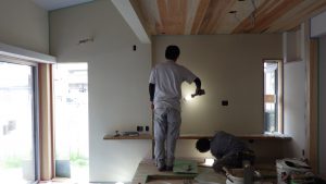 この現場は、内部が漆喰押さえと、玄関の土間がビリのふき取りです。 出隅がとても多く今までで一番大変でした。