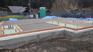 富士吉田の新築工事です。床暖房コンクリート押さえです この上にべニア、フローリング施工になります、精度を求められる作業、緊張感をもって 作業します。