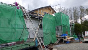 富士吉田新築工事です。この現場は、知り合いの大工さんからの紹介をいただいて 施工させて頂いています。とてもありがたく思います。和風のお家で、個性間が たっぷりです、外壁はモルタルで仕上げは吹付です。