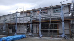 甲斐市での新築現場スタートです、この家では外部モルタル、 ジョリパット仕上、中は漆喰、珪藻土仕上です。