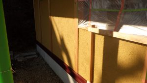 茶室の仕事です。外壁はジョリパット特殊仕上げ 内部は、聚楽にわらを入れて塗りました、外部、内部ともとても良い 質感に仕上がりました。