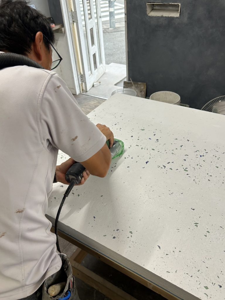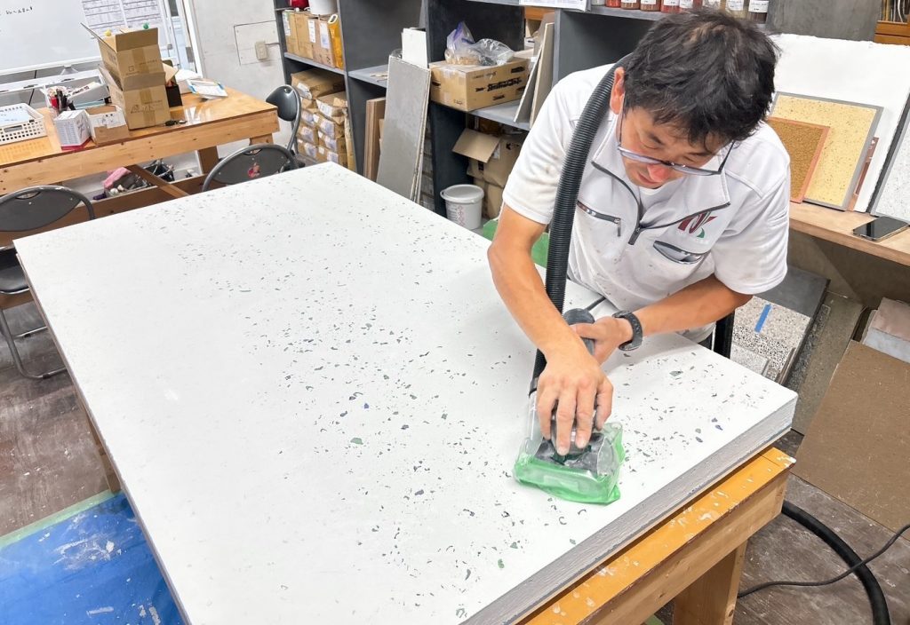 じむの独り言, ビールストーン ビールストーンテーブル制作中をのぞき見 ビールストーンテーブルを制作中の社長。 磨いていくと埋まっている石、ガラスがどんどん浮き出てくる。 宝探しのようでおもしろいです。 2025-10-06 | Posted in じむの独り言, ビールストーン | No Comments » 関連記事 技能実習生たち 取材現場に潜入 左官文字 < ビールストーンテーブル 左官文字 >