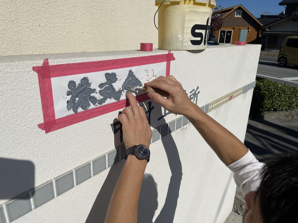 じむの独り言, モールテックス、モラート 左官文字 会社の看板がなかったので、お試しで門柱に左官で文字を書くことになりました。 今回の材料はSTOを使用しているそうです。 完成! 型を作ることができれば、好きな形や色で制作できるそうです。 2025-10-07 | Posted in じむの独り言, モールテックス、モラート | No Comments » 関連記事 技能実習生たち 取材現場に潜入 ビールストーンテーブル制作中をのぞき見 < ビールストーンテーブル制作中をのぞき見 取材現場に潜入 >