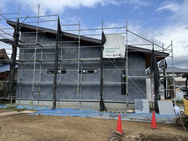 ブログ, 新築現場の紹介, 施工例写真集 ジョリパット 水墨色 今回の現場の外壁仕上げは、ジョリパットの「水墨(濃色)」です。 淡い部分と濃い部分 をつくりだし、自然な“斑(むら)”を表現しています。 落ち着きと深みのある外観に仕上がりました。 2025-11-06 | Posted in ブログ, 新築現場の紹介, 施工例写真集 | No Comments » 関連記事 モールテックス アイランドキッチン 甲府 花小路 技能実習生たち 取材現場に潜入 左官文字 < モールテックス アイランドキッチン