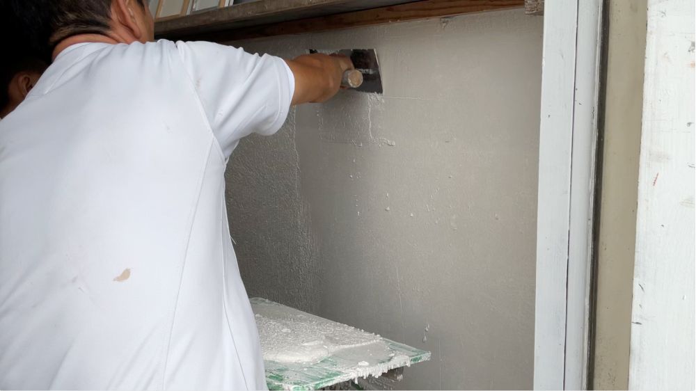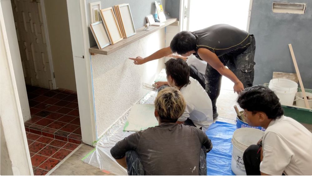 じむの現場便り, ビールストーン, ブログ, 新築現場の紹介 ジョリパットの練習 ジョリパットのエンシェントブリック仕上げの練習風景。こんな風に現場だけでははなく、時間を見つけては事務所で練習をしています。 左官職人は減っていますが、AIやロボットではできないこの技術。だからこそ、親方から受け継いだ技術をつぎの世代へ、そしてその先の世代へとつないでいくことが大切だと思っています。 2025-11-17 | Posted in じむの現場便り, ビールストーン, ブログ, 新築現場の紹介 | No Comments » 関連記事 甲府 花小路 技能実習生たち 取材現場に潜入 左官文字 ビールストーンテーブル制作中をのぞき見 < ジョリパット 水墨色