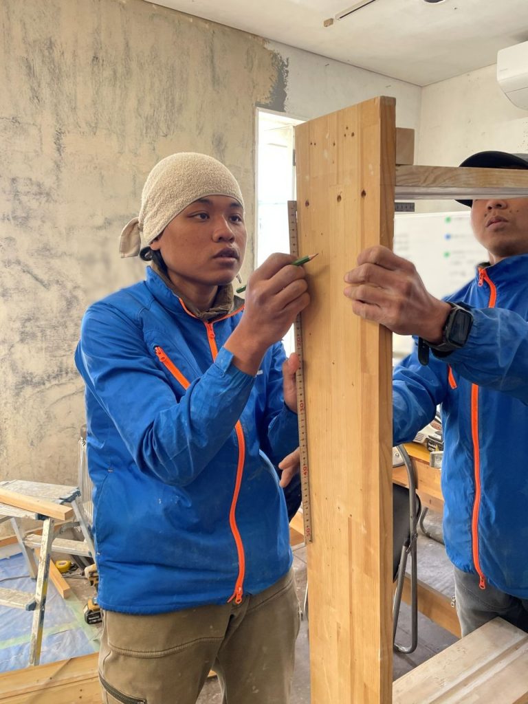 練習用架台づくり(外国人技能実習生) 2026年2月2日 最終更新日時 : 2026年2月2日 nakamura 外国人技能実習生が仲間に加わってから、早くも4か月が過ぎました。 少しずつ日本語も理解できるようになり、日本で働き続けるために技能試験にも挑戦している彼ら。 来日から1年以内に基礎級技能検定、3年以内に随時3級技能検定、5年以内に随時2級技能検定を受験します。 基礎級技能検定の実技架台図です。 図を見ながら練習用の架台を作るふたり。真剣なまなざしです。 練習架台の完成しました。さて、彼らの挑戦はここからです! \ 最新情報をチェック /