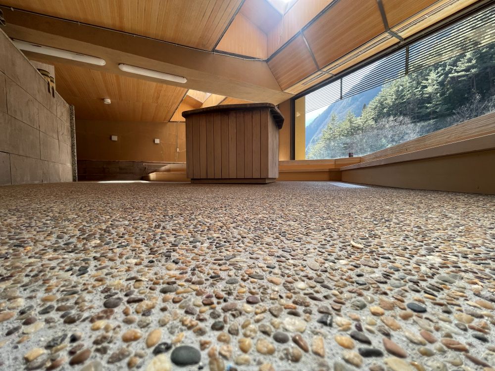 旅館の洗い出し仕上げ(完成) 2026年2月19日 最終更新日時 : 2026年2月19日 nakamura 旅館の改修現場が終わりました。 露天風呂、そして床は洗い出し仕上げです。 絶景の眺めです。 こちらは大浴場です。乾きが早く施工中はとても苦戦しましたが、きれいに仕上がりホッとしています。 こちらの旅館は3月からリニューアルオープンを予定しています。 美しい景色とあわせて、洗い出した石の質感もぜひ感じていただけたら嬉しです。 \ 最新情報をチェック /