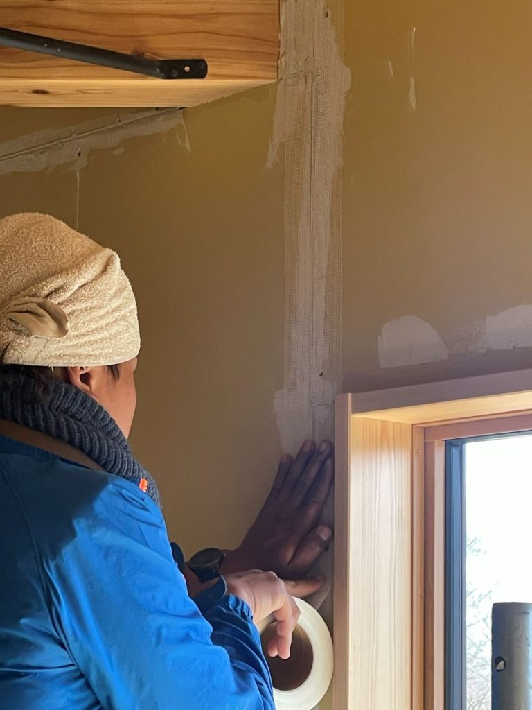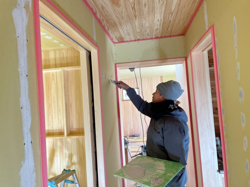 北杜市の現場 2026年2月25日 最終更新日時 : 2026年2月25日 nakamura 立春を迎え、少し早いようにも感じますが、暖かい陽気がの日が増えてきましたね。 さて、今日は北杜市長坂の現場です。 張り出す下屋の下には、のびやかな土間が続いています。土間の仕上げはモルタル押さえになるようです。 室内の壁は漆喰塗りになるそうです。今日はその下地作業として、ボードの継ぎ目にメッシュを張るトリク君とビスの穴埋め処理を行っているムニル君。二人ともファイト! 以上、北杜市の現場からお伝えしました。 \ 最新情報をチェック /