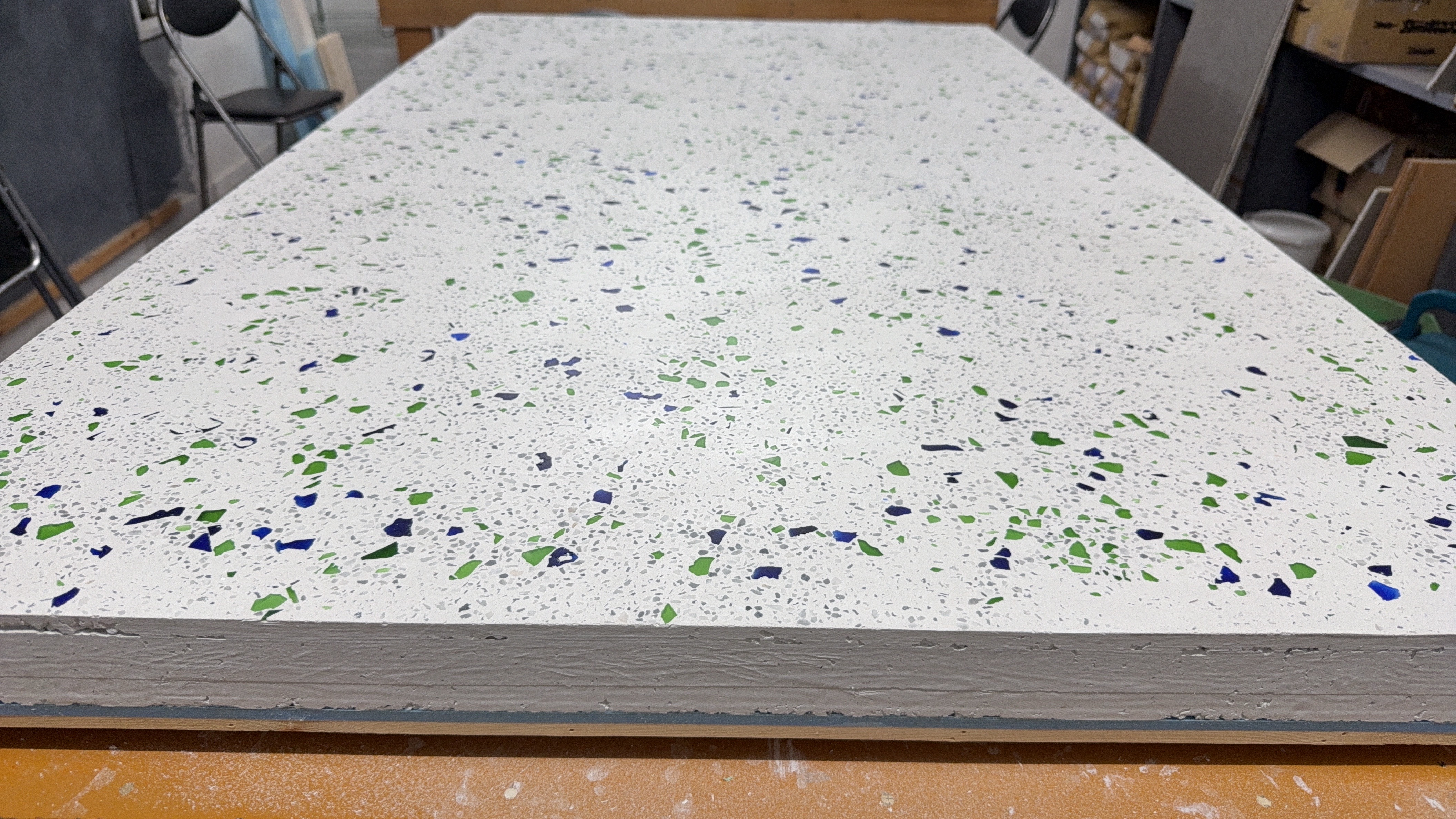 天然石のような高級感を薄塗りで表現できる仕上げ材。キッチンカウンターにも最適で、耐水性と強度に優れています。